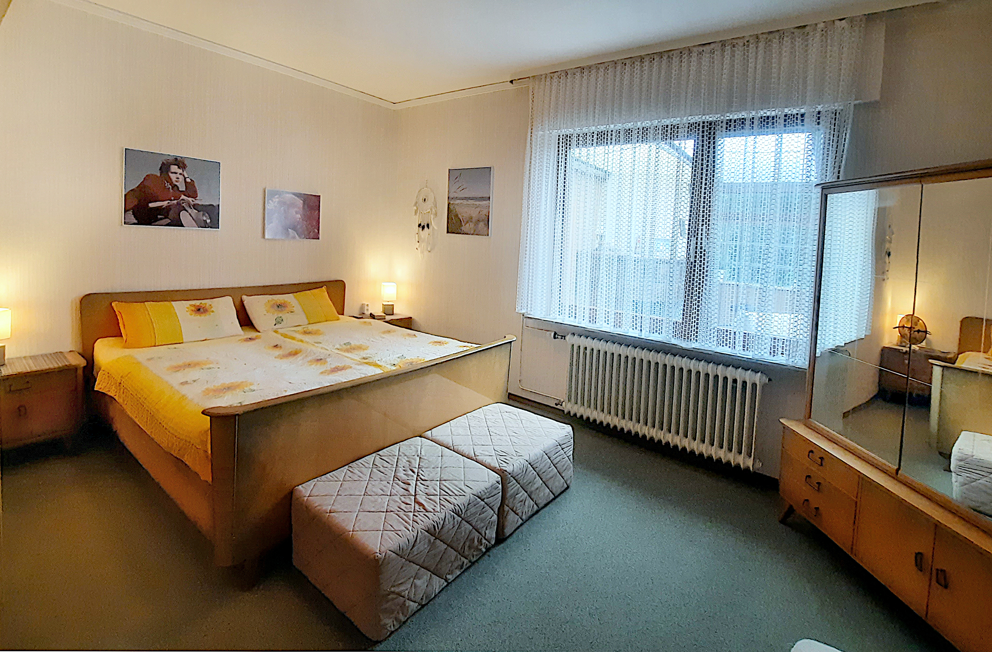 Kleiderschrank und einer Spiegelkommode gibt es zusätzlich eine gemütliches Schlafsofa. Ausserdem